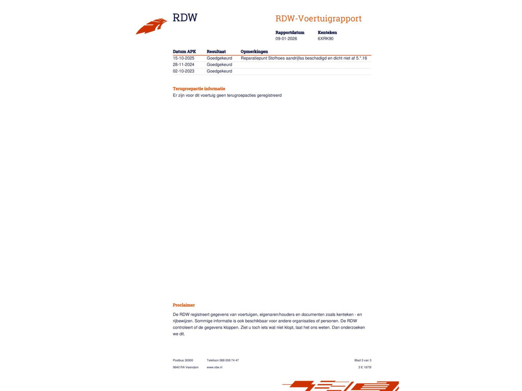 *Dit is de meeneemprijs zoals vermeld op de website. Partijen verklaren hierbij uitdrukkelijk af te zien van een afleverbeurt en twaalf maanden Garantie. Dit houdt in dat de koper bij aankoop van een gebruikte auto geen recht heeft op een afleverbeurt noch op garantie van twaalf maanden. Door ondertekening van de koopovereenkomst verklaren partijen hiermee akkoord te zijn.
